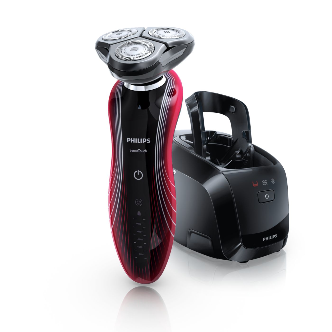 El sistema de doble cuchilla de la afeitadora eléctrica Philips levanta el vello y lo corta al ras para que disfrutes del mejor afeitado.