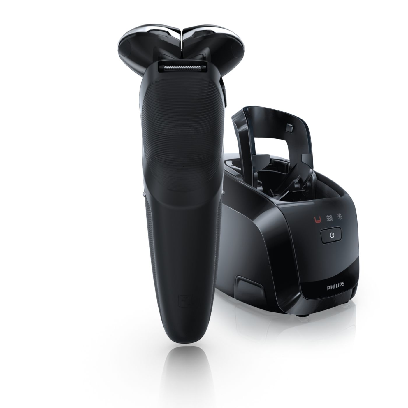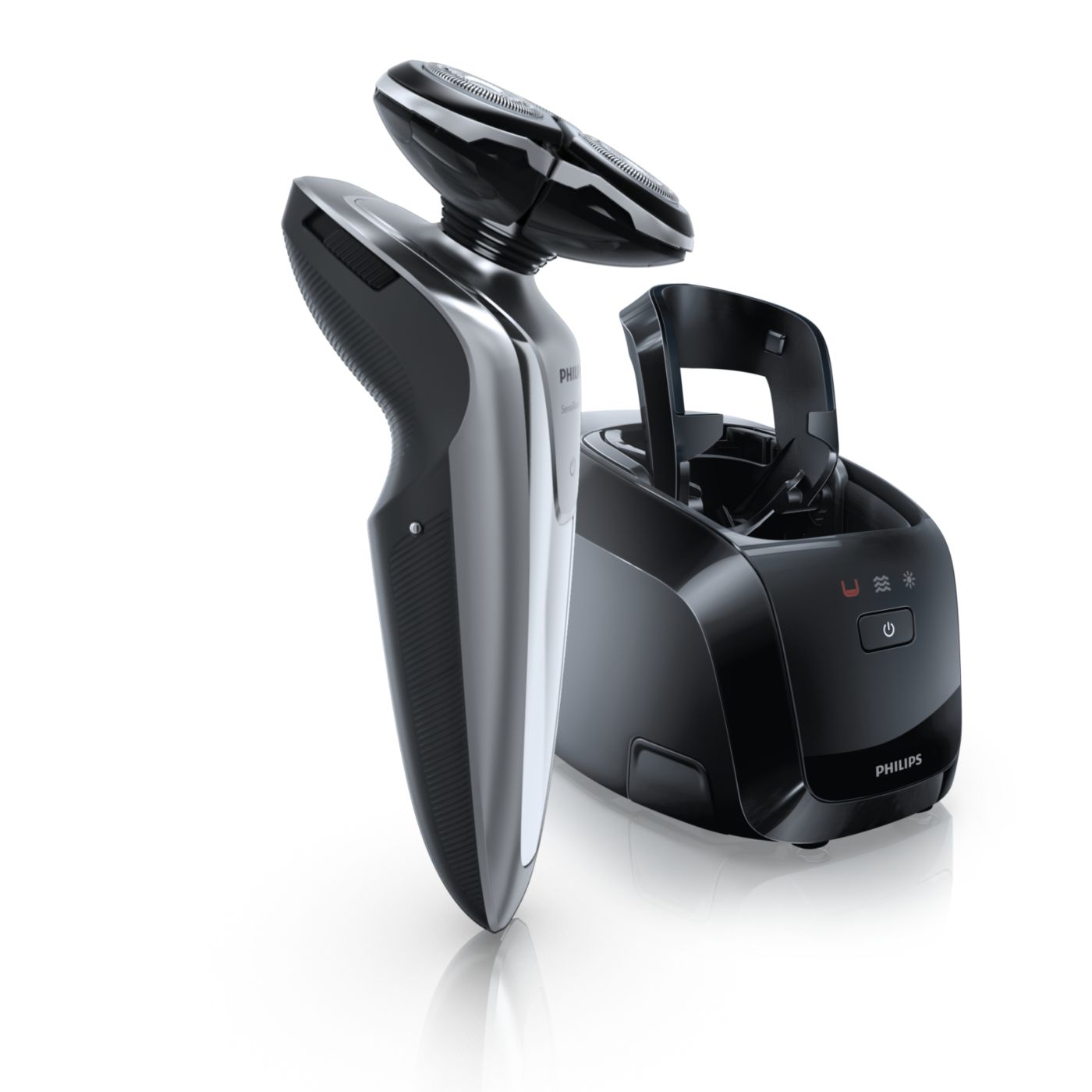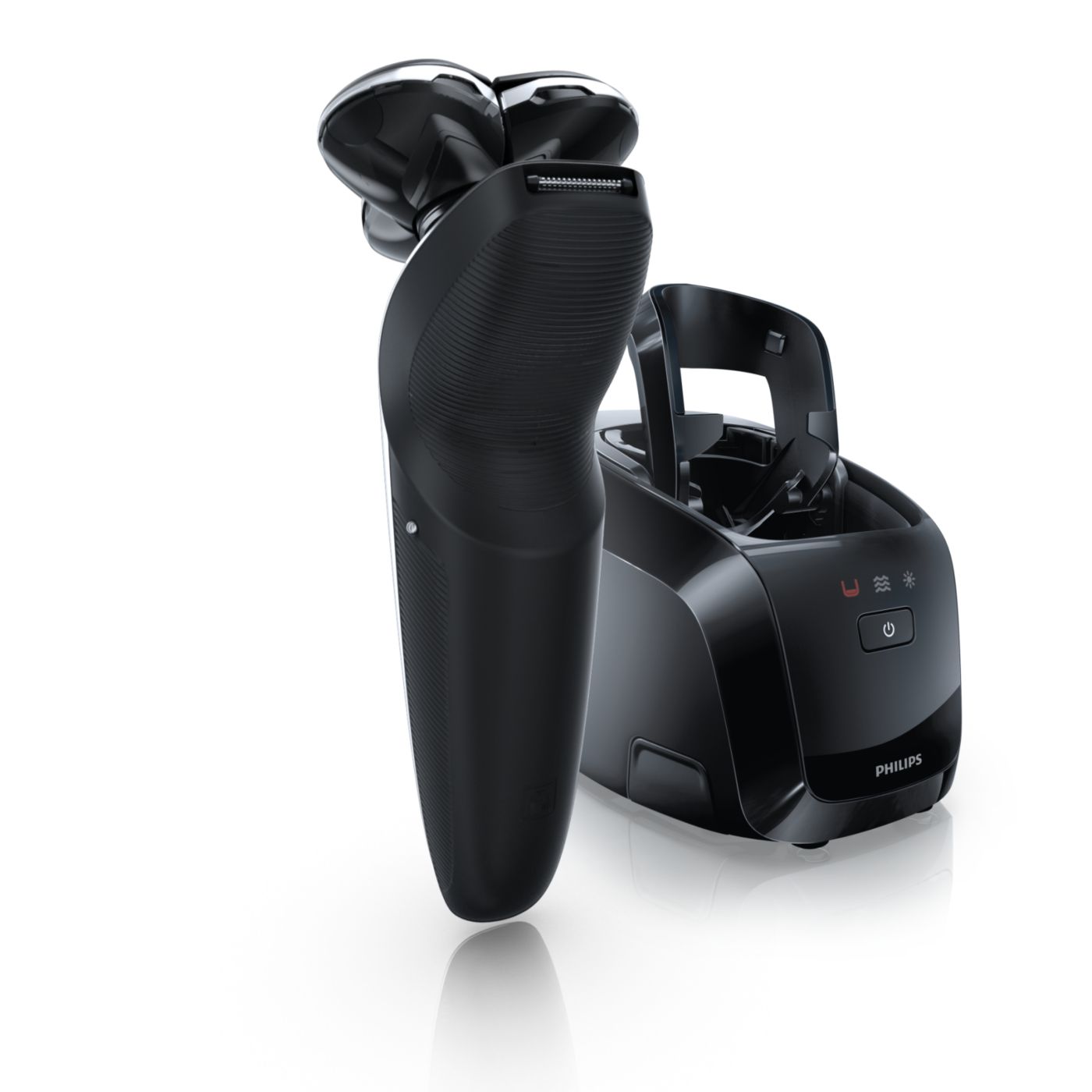 El sistema de doble cuchilla de la afeitadora eléctrica Philips levanta el vello y lo corta al ras para que disfrutes del mejor afeitado.