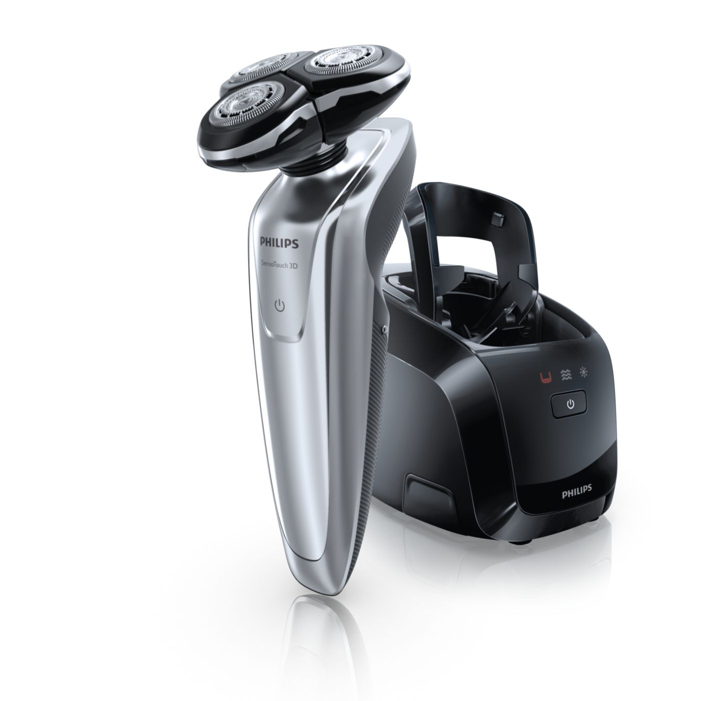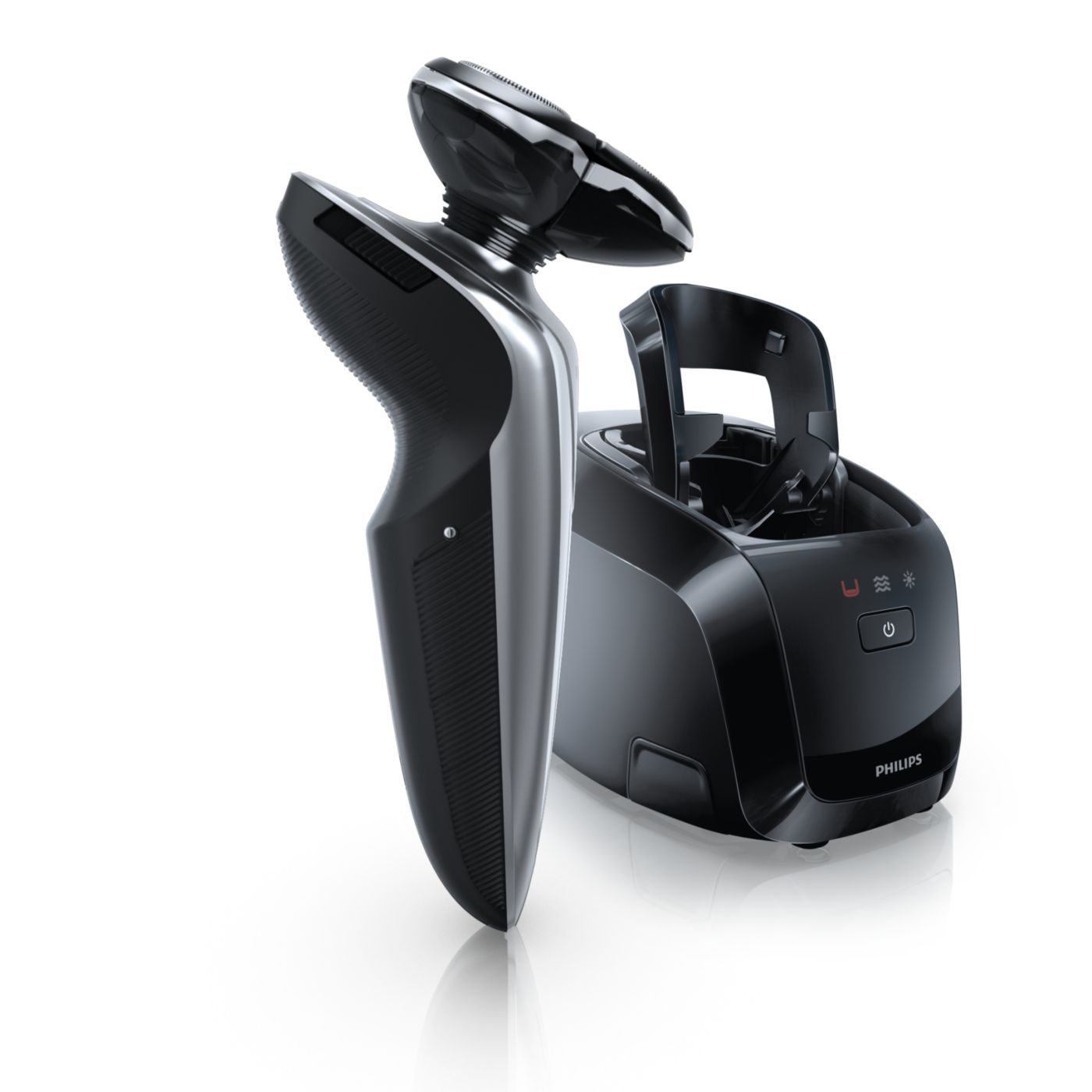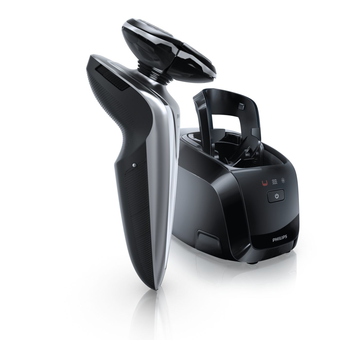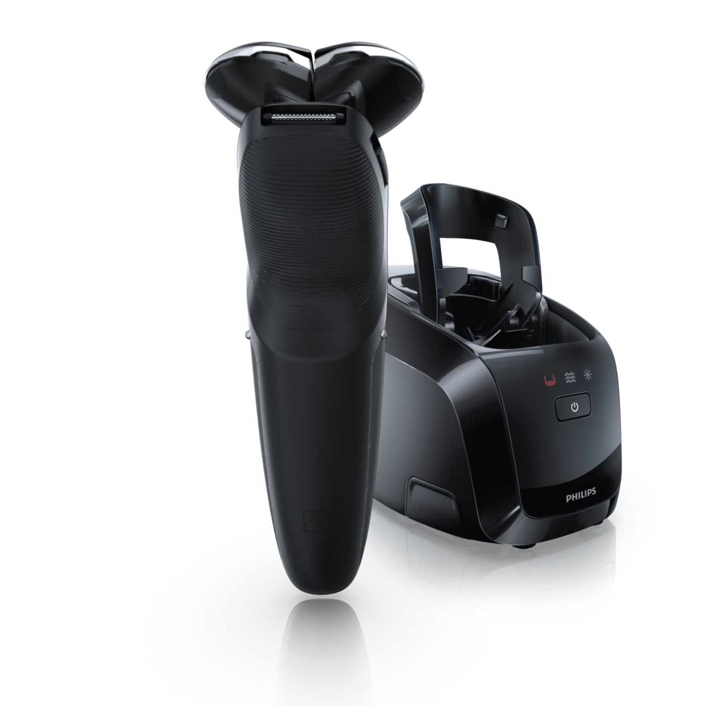 El sistema de doble cuchilla de la afeitadora eléctrica Philips levanta el vello y lo corta al ras para que disfrutes del mejor afeitado.