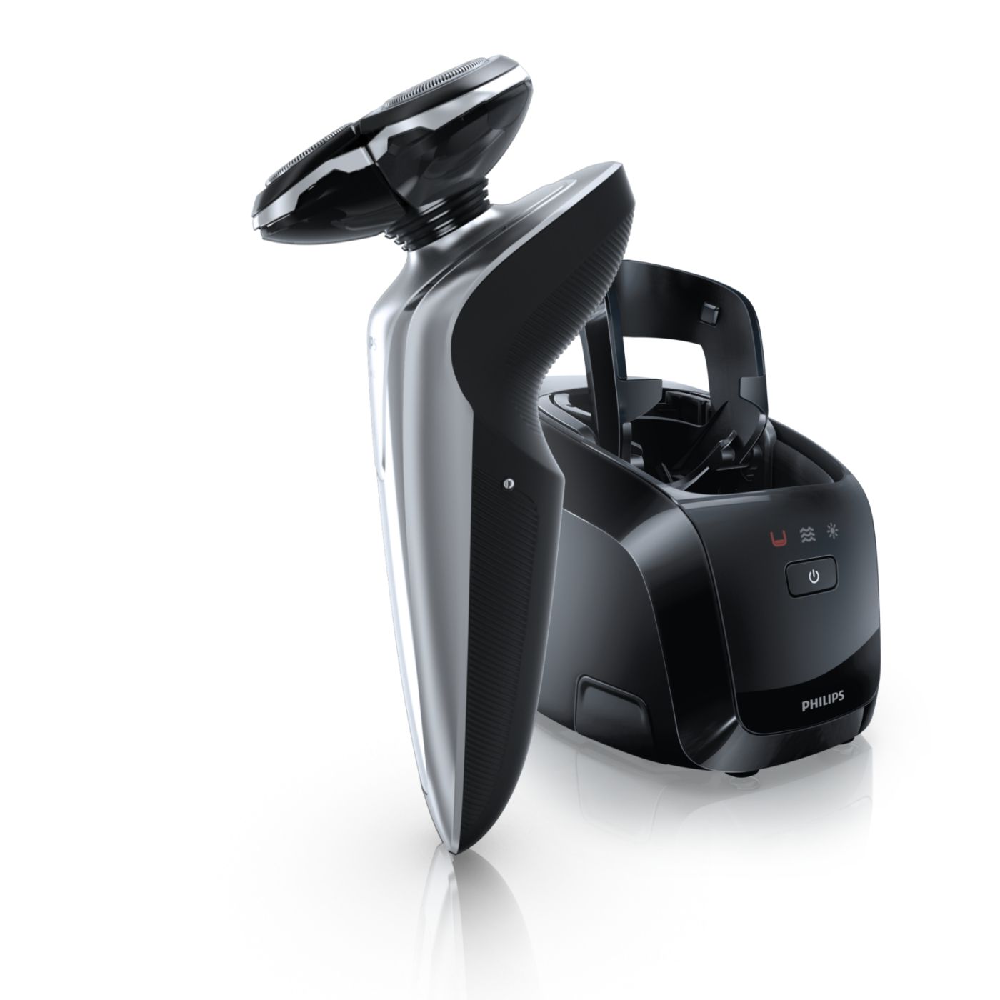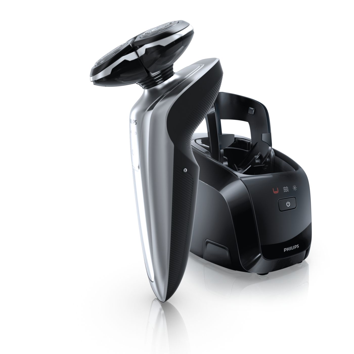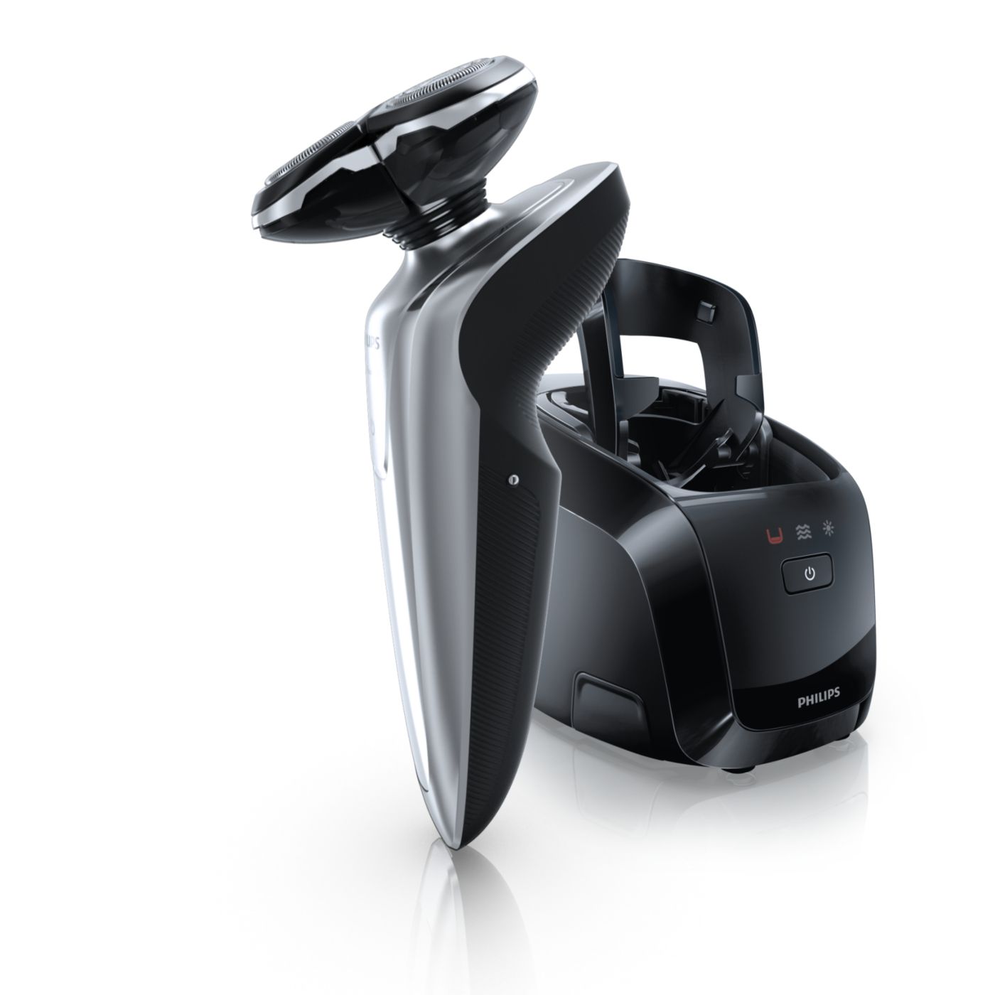 El sistema de doble cuchilla de la afeitadora eléctrica Philips levanta el vello y lo corta al ras para que disfrutes del mejor afeitado.