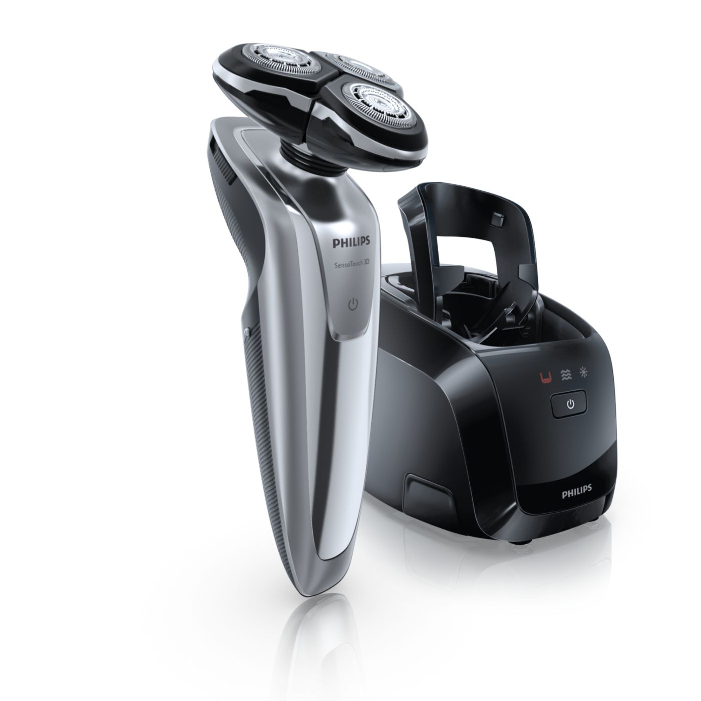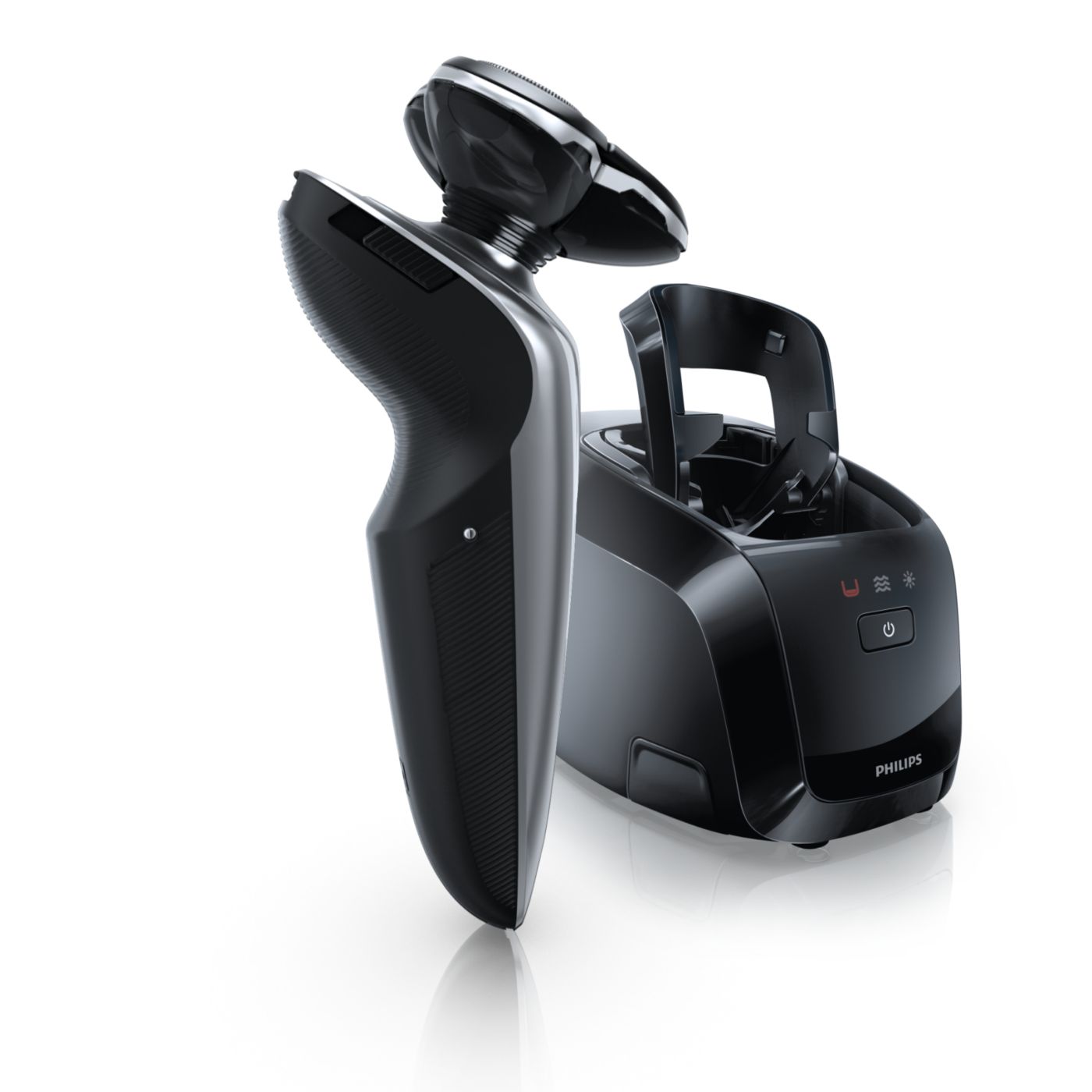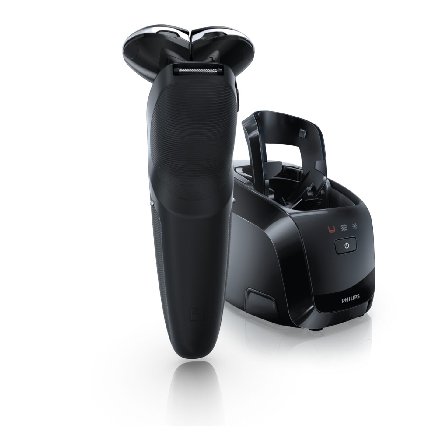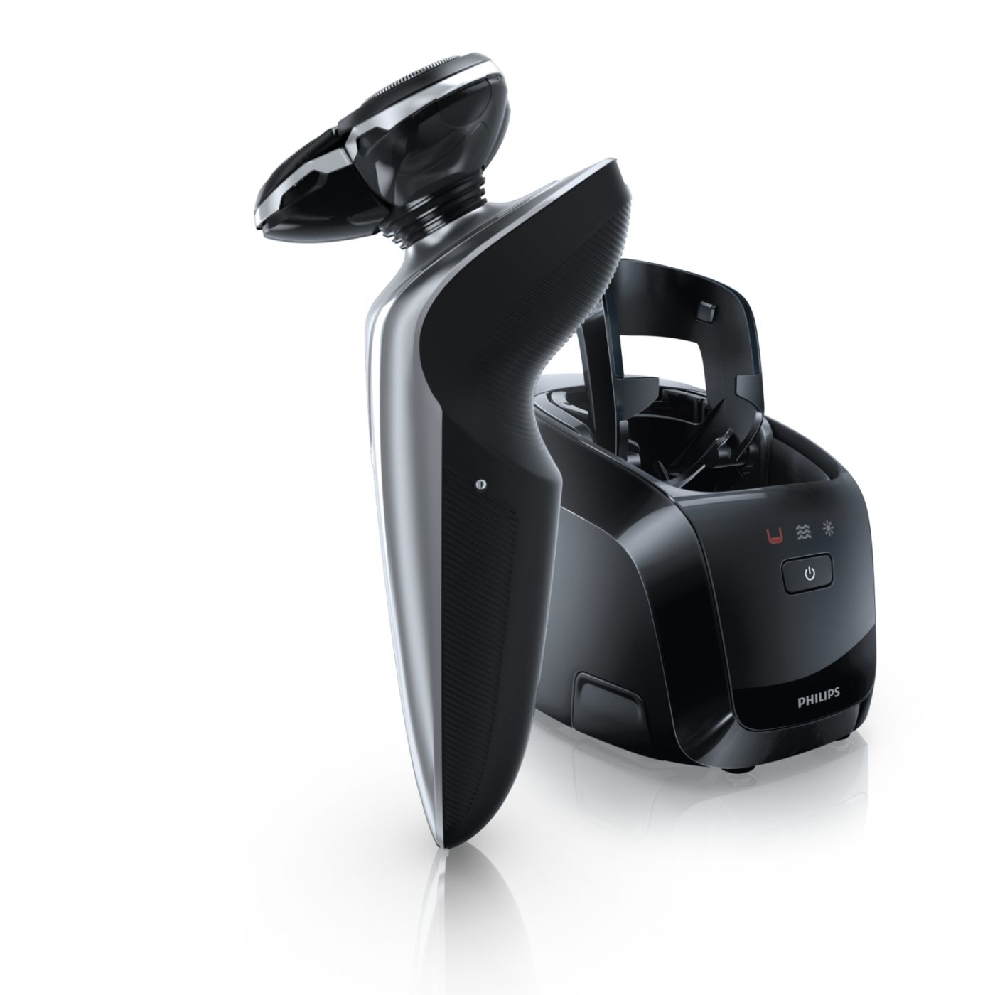 El sistema de doble cuchilla de la afeitadora eléctrica Philips levanta el vello y lo corta al ras para que disfrutes del mejor afeitado.