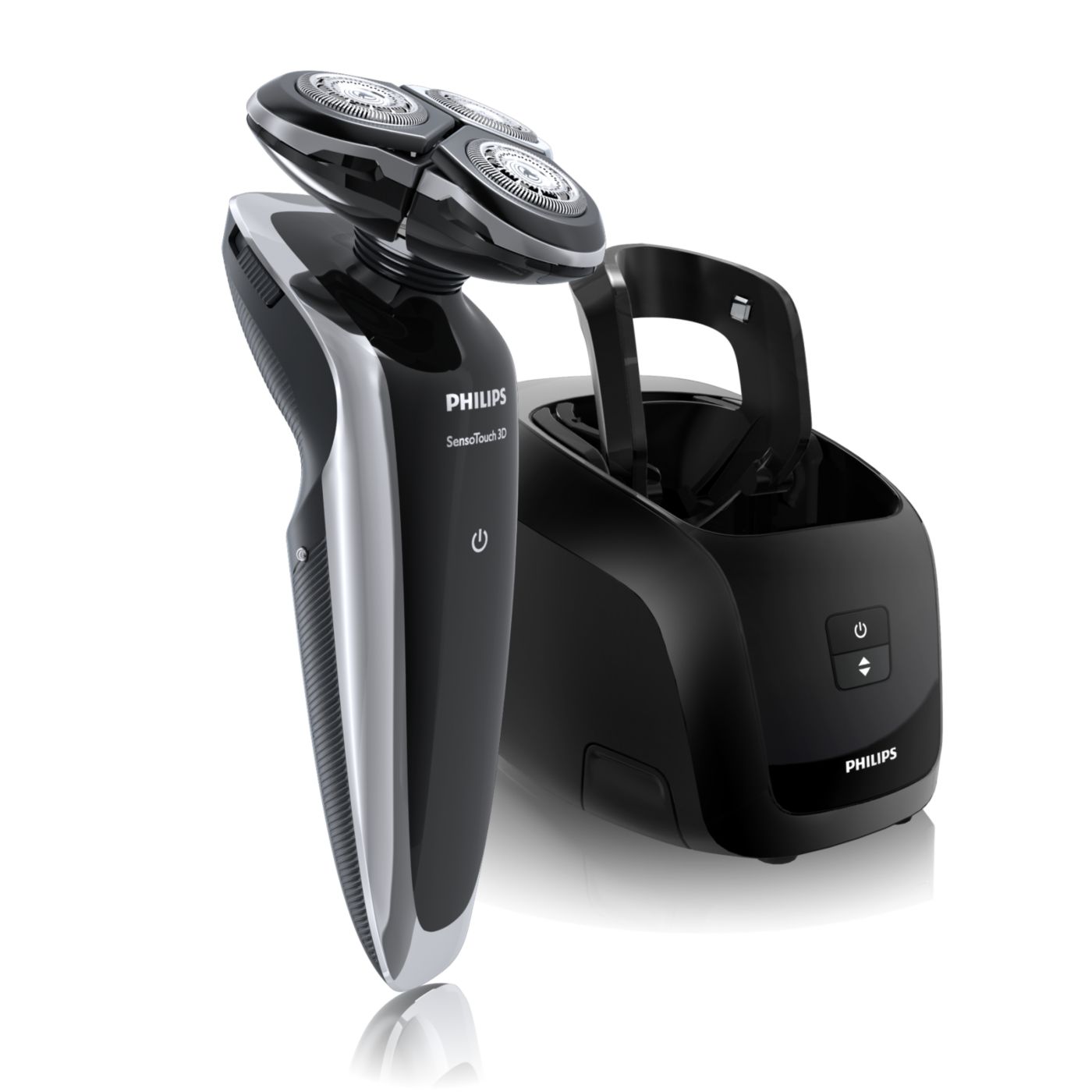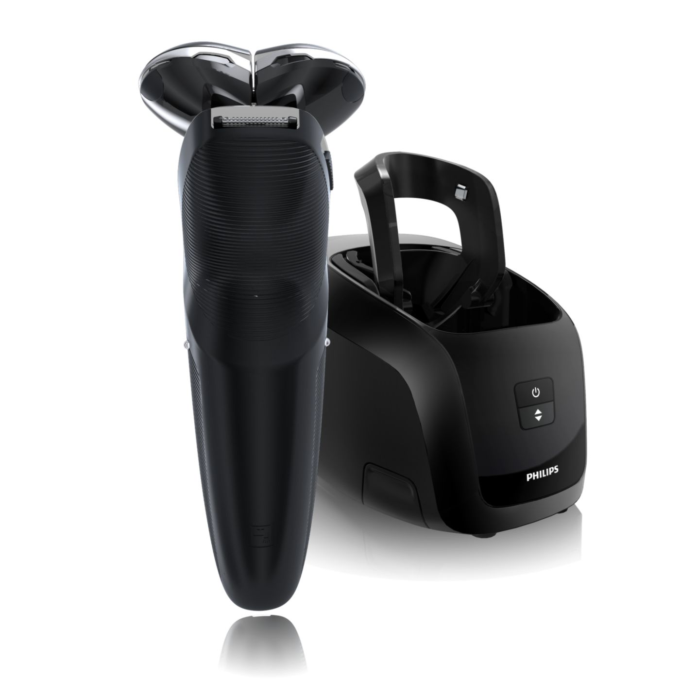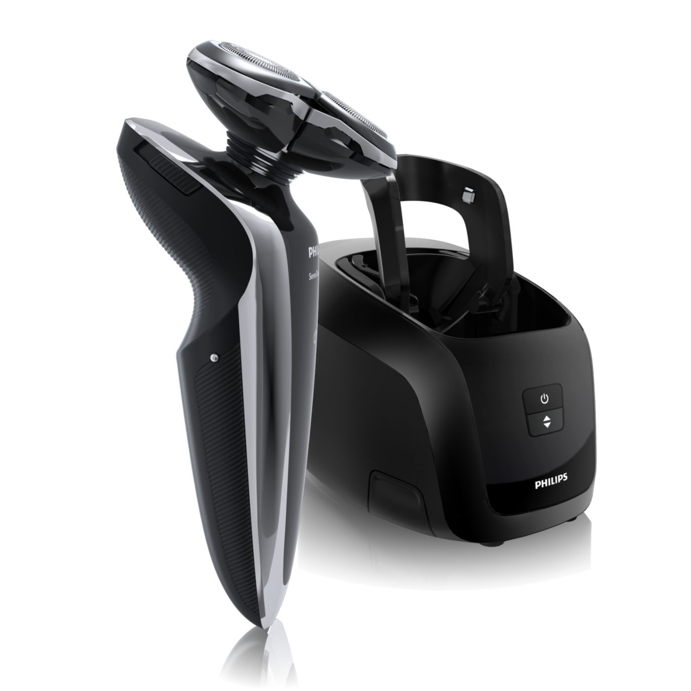 El sistema de doble cuchilla de la afeitadora eléctrica Philips levanta el vello y lo corta al ras para que disfrutes del mejor afeitado.